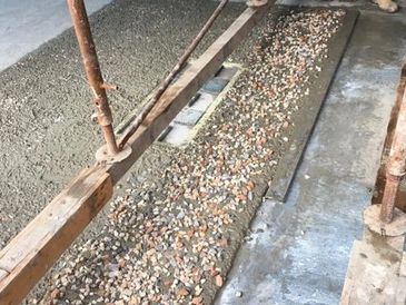Sopra a un sottofondo realizzato in sabbia e cemento e calce, con uno spessore disponibile di circa 2 centimetri opportunamente inumidito, e' gettato un tappeto dello spessore di circa 1,7 centimetri in cemento - polvere di marmo - graniglia di vari spessori, preventivamente impastato in betoniera.